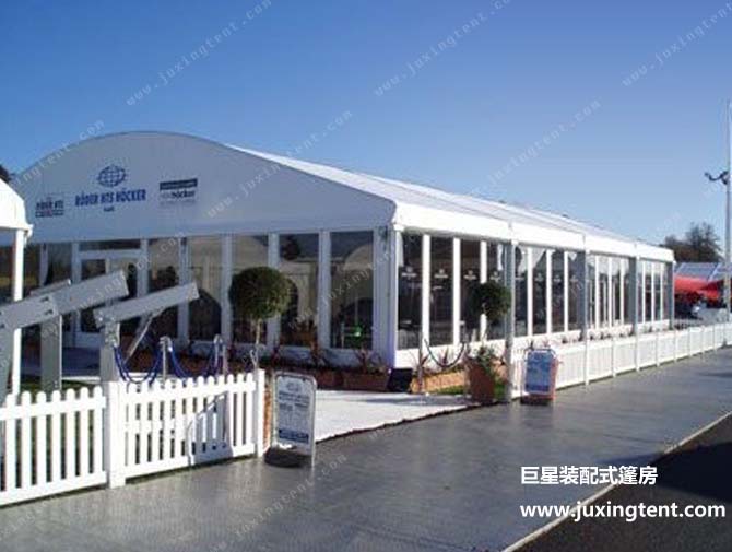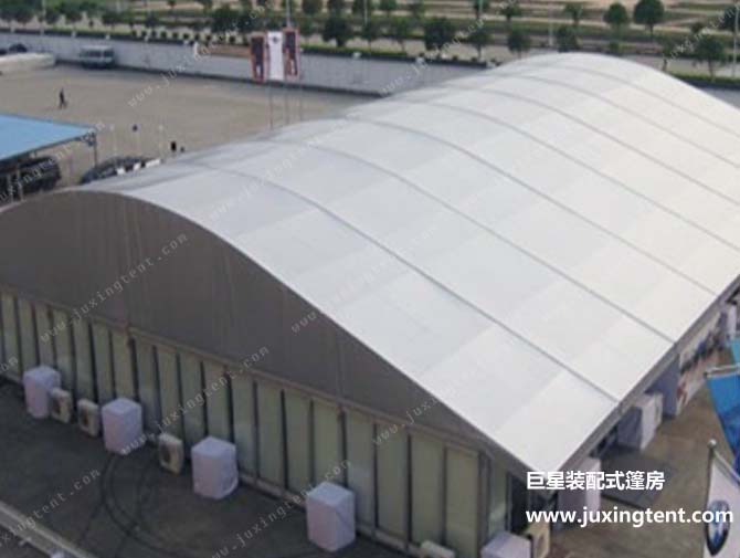 弧形篷房其实是由人字顶篷房演变而来,顶部是精致的弧形线条设计,零部件互换性强,可以灵活的将弧顶转换成人字顶篷房,也可以将人字顶篷房灵活的转换成欧式弧形篷房。巨星篷房厂家精心设计的模块化结构,搭建周期短,拆搭快捷,且有多种规格尺寸可以定制,能够让客户快速投入使用。